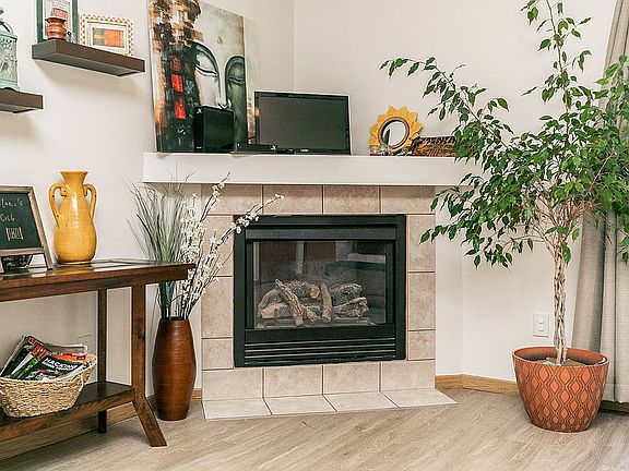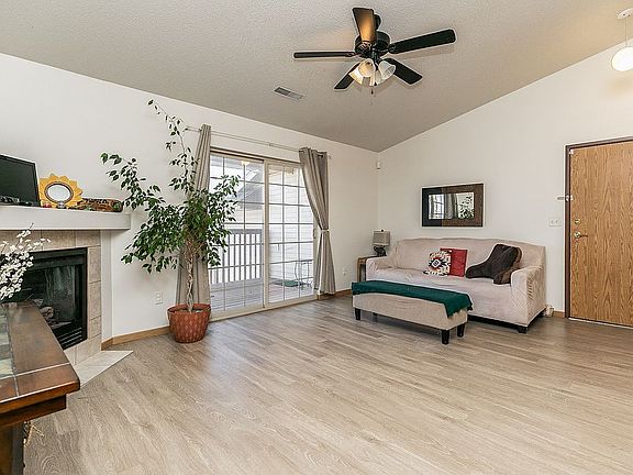Spacious top floor condo with tons of natural light. 2 bedroom/1 bath with vaulted ceilings and beautifully updated floors. Open floor plan with cozy corner fireplace, large deck, and TWO garages. Lots of closet space and bathroom even features double vanities. Washer and dryer in unit stay. Conveniently located near bus line, dog park, trails. Prof photos coming soon.