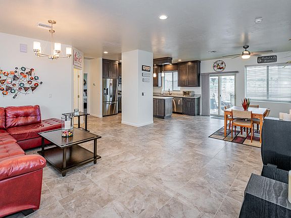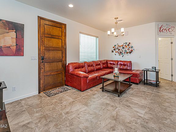 Experience contemporary living at its finest with this remarkable 3-bedroom, 2.5-bathroom residence, complete with a 2-car garage, nestled on a serene lot with lovely mountain views. Boasting an expansive open floor plan, this home is perfect for those who value a modern lifestyle. Upon entering, revel in the inviting atmosphere created by the stunning ceramic tile flooring and abundant natural light that fills the great room. The kitchen is a culinary enthusiast's dream, featuring Granite counters, ample cabinetry, an island with pendant lights, and stainless-steel appliances including an energy-star dishwasher. With a well-designed split floor plan, the spacious master suite is a true retreat, inclusive of a walk-in closet, ceiling fan, and an in-suite bathroom equipped with a double