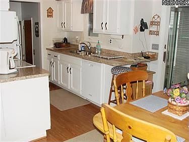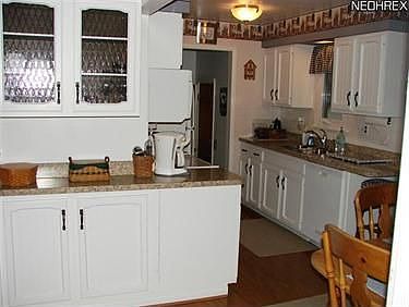 Northside 3 bedroom ranch with 2 full baths. Move-in condition. Features include updated kitchen and newer countertops. Nice eating area in kitchen. 3 season room off kitchen with cathedral ceiling and sky lights. Windows on 3 sides overlooking a manicured lot that is totally fenced. (Privacy fence). Features also include a large living room with bay window and 3 bedrooms. Hardwood floors in living room and bedrooms. (Covered with carpeting). Finished basement with fireplace , wet bar, full bath, laundry room and possible bedroom or office. Has heat and central air. Quiet street. Close to LCCC, I90, shopping and schools. Ceiling fans in all bedrooms. Living room window treatments do not stay.