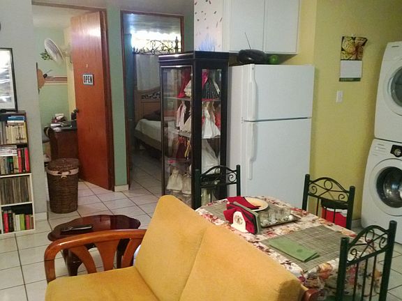 2 habitaciones, 1 baño, sala/cocina/comedor, acogedor. Lugar tranquilo. Cámaras de seguridad en el Condominio. Espacio asignado para dos estacionamientos con seguridad adicional para los vehículos. Baño recién re-modelado. Incluye lavadora, secadora, nevera y estufa. Estos enseres de recién compra. Dos acondicionadores de aire.