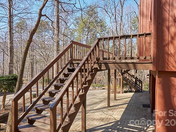 Nicely updated mountain getaway with winter views being offered with turnkey furnishings – ready to use or rent. New roof, fresh stain on house and decking, LVP flooring (all 2022). Main and upper levels each have one bedroom and full bath, and in basement a private, spacious bonus room with full bath is being used as a double bunk room. Interior tongue and groove walls and ceilings with contrasting beams on cathedral ceiling and as accent trim give rustic charm. The two-story great room features a wood-burning fireplace with stone surround. The upper loft provides additional sleeping or relaxing space. Kitchen updates include new appliances, lighting and granite counters. The basement 2-car garage has extra storage space and laundry area. Part of Rumbling Bald at Lake Lure, enjoy all the amenities (pools, lake access, beach, golf, fitness center). Great investment property or private home. Plenty of outdoor adventures and other activities within 50 mi. radius for anyone’s interests.