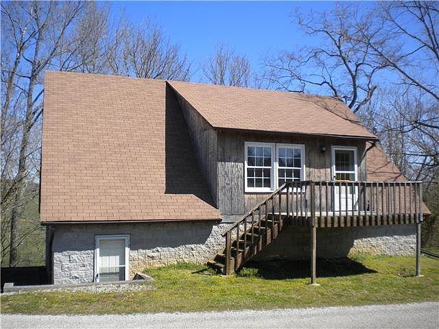 Neat cabin at Clear Creek Lake. This 1,could easliy be 2 bedrooms cabin has large Living Room,Kitchen,and Bathroom,2 viewing decks, and has a 6 car garage in basement. Lots of closets. Double pane windows, 12x24 Bedroom could be made into 2 bedrooms