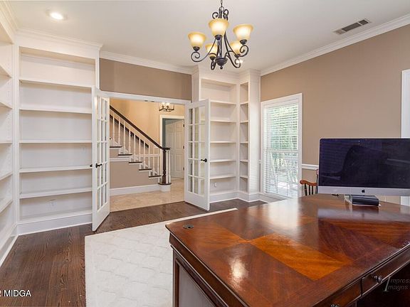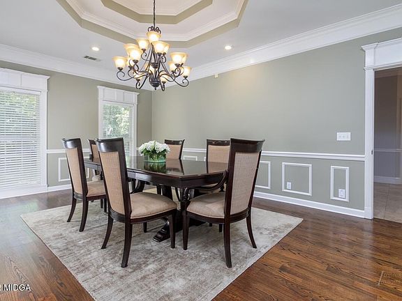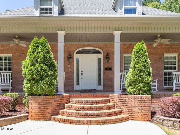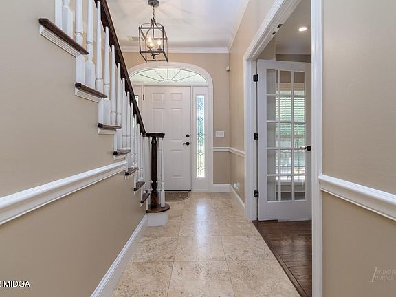Spectacular home sitting on a knoll with over 3 acres of prime living in Monroe County but with a Macon address. This large brick home has amazing features starting in the driveway with a 4 car garage, The front porch has room for rocking chairs and entertaining. As you enter the foyer, you will be amazed at the office on the left with built-in shelves.The primary bedroom is on the main & has been updated and has a sitting area, gorgeous in bath suite. Upstairs are 3 additional bedrooms and 2 baths.The finished basement is fabulous with theater room, exercise room, bedroom, game room, bathroom, kitchen area and more. Don't miss the laundry room on the main that will entice you to do laundry every day. Private back-yard and more.