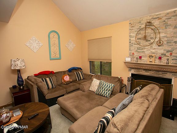 Cozy 2 bed, 2 full bath (jet tub on first floor) townhouse in The Falls at Saw Creek. Ready to move in and enjoy as a vacation home or for full time living. This also has a storage closet outside for extra storage. Lots of amenities, pool, tennis, basketball, and close to recreation of all sorts, shopping and entertainment. Just a few miles from the Delaware Water Gap National Recreation Area. This home comes furnished, complete with pool table, patio furniture and grill. Make an appointment today.
