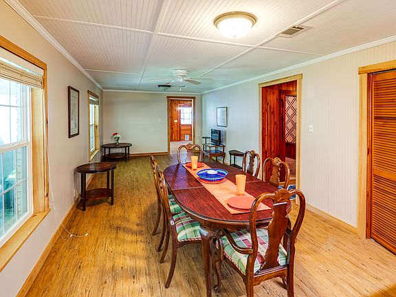 This is a fisher and boater's private oasis! Bluff-style true deepwater home on Crooked River! An oldie but goodie, this has had all of its services upgraded throughout the years with a new roof and new windows just put in. Huge workshop w/ 220v can be used as a garage in addition to the carport. This wonderful, east-facing property, has a separate boathouse and fishing dock just steps from the backyard's bulkhead on Crooked River! Some of the many features include: lg master suite with plenty of closet space; beautiful custom hardwood country kitchen cabinetry with all appliances conveying; breakfast bar; inside laundry room; den with hardwood walls and an amazing view adjoined to the screened-in back patio! True Deepwater at a great price!!