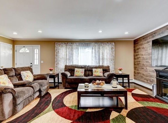 Great living space, neighborhood and handy to town, This Charming 3 Bedrooms 2 Full baths Ranch Style Home feature's updated bathroom's, The Master bedroom has a walk in cedar closet and a full bathroom with glass enclosed shower. Custom Kitchen with dishwasher, microwave, granite countertops with breakfast bar seating for 4 people. Recessed lighting . Newly finished wood floors. 1 Zone central air.2 zone baseboard heat, Remote control garage doors. A walkout finished basement with a large Family room, an updated office and laundry room with a walkout to the patio. Plenty of storage space. Dining room leads onto a huge deck excellent for entertaining guests and barbecuing, which has mature trees for privacy. New shed on the property to store your outdoor equipment.