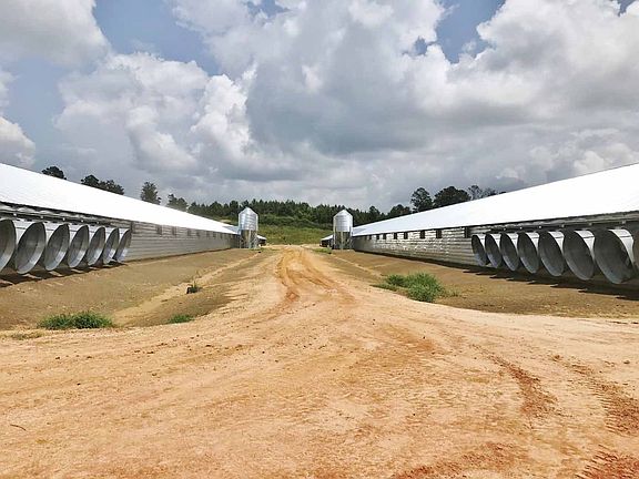 New 12 house broiler farm for sale in Heidelberg, Jones County, MS. This farm sets the bar for farms in the state of Mississippi. All houses are 46 x 500 feet. They were constructed just over a year ago and have every bell and whistle a poultry farm can have or need. The farms are situated where two families could purchase and have two different businesses. 8 of the barns are on one side of the property and 4 more on the other side. One common entrance road that divides to go to each farm. Houses have Rotem Platinum with enhanced back up and communicators, Choretime feeders, Plasson drinkers, Acme fans, 4 deep water wells, 2 generators, community water with 5 inch line, 2 compost sheds and a 30,000 gallon LPG bulk tank that will save thousands of dollars per year in gas alone. There are 2 new John Deere 5075 tractors, KNC decaker, litter pulverizer, wall blade, bush hog, box blade, 300 gallon pressure washer all new. The farm includes two 3 bedroom, 2 bath mobile homes. This is a large business with all aspects of a great farm being addressed. Once in a life time opportunity. Farm will have a 15 year contract with the top poultry integrator in the state. Please call for appointment. This farm cannot be seen on the same day as another farm due to biosecurity procedures.