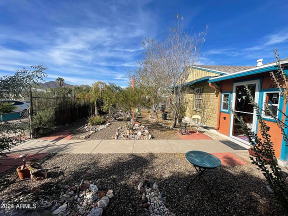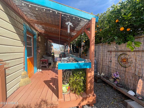 Charming and private, this 3-bedroom, 1-bathroom residence is nestled near the Ajo School District. The property boasts a fenced yard enveloped in bamboo accents, creating a unique and tranquil atmosphere. On the east side of the house, a covered deck and patio enhance the outdoor living. A second covered patio in the rear of the house provides additional options for outdoor relaxation and entertainment. The home features a newer roof, a modern heat pump and a tank-less water heater which contributes to it's energy efficiency. Step inside to discover beautiful dark laminate flooring, adding a touch of elegance to the living spaces. The kitchen is equipped with a gas convection oven and gas cook-top. This wont last long.