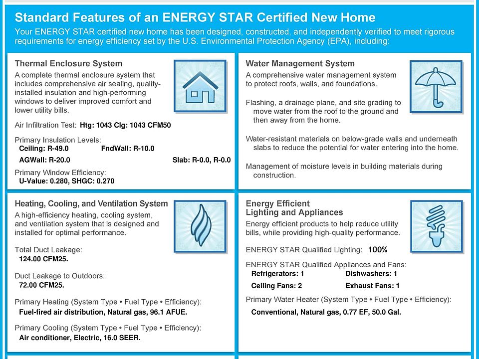 • Appliances: Dishwasher, Refrigerator, Disposal, Microwave, Stove, ENERGY STAR Qualified Dishwasher, ENERGY STAR Qualified Refrigerator, ENERGY STAR Qualified Washer, Water Heater - High-Efficiency