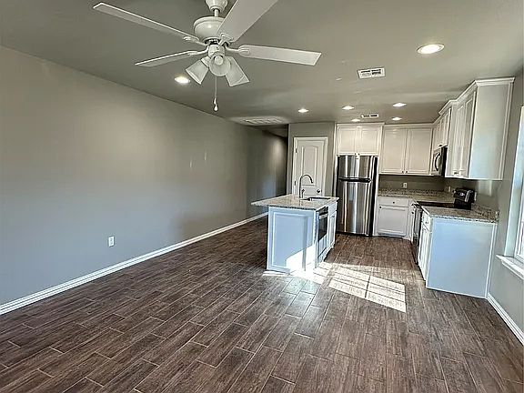 Spacious Duplex with granite countertops, up to date appliances, back yard area, private parking, and storm shelter on property. This unit is located in the Silo school district and a very short distance from the Rebel Station. Renter is responsible for water and electricity. Landlord will pay for and install AC filters. Landlord responsible for mowing. Lease is for one year. No smoking or vaping in the home.