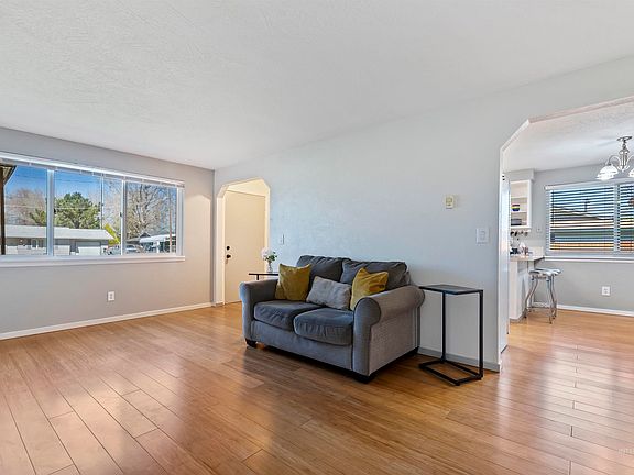 HOME and separate STUDIO! Welcome to downtown Kuna living at its finest! This charming property boasts a 3 bedroom, 1 bath home, along with a separate 1 bedroom studio apartment complete with its own entrance, kitchen & bath; perfect for guests or rental income. Updates include NEW roof, bamboo flooring, carpet, interior & exterior paint, mini-split system, water heater, asphalt driveway & much more! Ample storage space with 2 large storage buildings, one with workbench & loft, ideal for hobbies or projects. Addtl parking is provided for RVs, trailers, vehicles, boats with a detached 1-car garage. Step into the backyard park oasis, complete with fire pits, garden boxes, picnic table, fruit trees & even a chicken coop with resident chickens – an urban farmer’s dream!Benefit from the freedom of NO CCRs or HOA rules, and take advantage of the nearby restaurants, Greenbelt access, and city parks just a short stroll away. Don’t miss out on this unique opportunity to own a versatile property in the heart of Kuna!