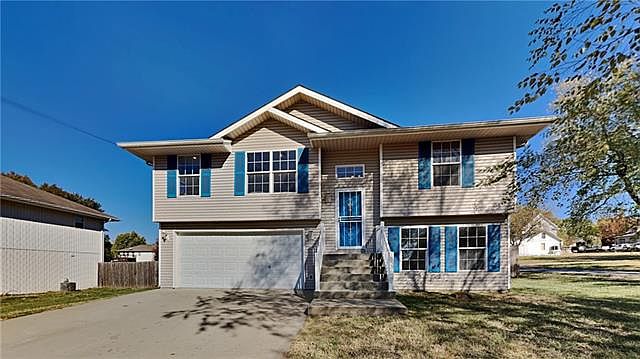 Hurry! This newly renovated raised in Odessa, MO is on a very cute block in town! Won’t last long! Near highway and shopping. Attractive open floor plan with a new roof and boasts high ceilings has lots of NEW!!! Open eat in kitchen with new quartz counters, newly stained cabinets, new Luxury Vinyl Plank flooring, newly painted interior and newly installed carpet throughout, and walks out to newly painted deck., This one really stands out. Primary bedroom has en-suite master bath with painted vanity, glazed counter, shower, private toilet closet and walk in closet. There’s another bedroom and hall bathroom upstairs and brand new bedroom added on the lower level egress windows for lots of natural light, and adjoins an oversized 2 car garage. Fenced backyard and huge level lot. Submit your best offer and let’s talk to make this HOME today!