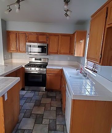 Great 4bd 3 ba home has open floor plan, two-story vaulted ceilings in, with stone tile flooring in main living areas, plush carpet in bedrooms. Plantation shutters throughout the house. One bedroom and full bath downstairs with linen cabinet. Upstairs vaulted ceilings in all areas, two bedrooms, one hall way bath and 2 Linen storage cabinet's on the landing. Master bedroom has wall to wall close, a dual sink ensuite bathroom and an enclosed shower. Laundry Washer/Dryer hook up. Attached 2 car garage with large 3 car drive way nice front yard and large spacious backyard includes a patio. Very quiet location. Close to many dining and shopping options, close to freeway.