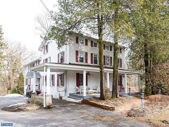 Impeccably maintained historic Media 6 bedroom farmhouse with new roof, new windows, completely renovated kitchen and bathrooms, 4,500+ SF of living space, and TONS of rustic charm. This home boasts a huge covered front porch, the perfect setting to enjoy your morning coffee or a warm summer evening. Enter into the grand living room with a marble floor entryway flanked by elegant columns, a gleaming hardwood floor, and marble encased gas fireplace with wooden mantel. Formal dining room features bright hardwood flooring, brass chandelier, and French doors that open into living room. Gourmet kitchen has been beautifully updated with recessed lighting, tiled backsplash, island with breakfast bar, stainless steel appliances, and swing door entry into adjacent breakfast room. Bright breakfast room offers crown molding, hardwood floor, ceiling fan, built-in hutch, and glass-paned cabinetry. Expansive family room features new wall to wall carpet, crown molding, French doors to huge private rear deck, and stunning floor-to-ceiling stone fireplace. Main level also offers a mud room with a tiled floor, sink with wood cabinetry, decorative copper backsplash, storage closet, and access to garage and rear deck. Second level boasts 3 bedrooms, 2 fully updated bathrooms, an office, spacious laundry room, and an ENORMOUS master suite. Master bedroom features wall to wall carpet, oversized windows, TWO walk-in closets, and beautiful en-suite master bath with marble floor and double sinks. Third floor offers 3 additional rooms, large storage closet, and a full bathroom. Unfinished basement offers additional storage space and walk-in cedar closet. This home is situated on a picturesque 1 acre property that includes an above ground pool with deck, fish pond with waterfall, huge storage shed, and playhouse with play equipment. This home features 4 separate split air conditioners with newly installed compressor in 2014 and 5 separate zones for heating. Conveniently located in Keswick area of Upper Providence, minutes from restaurants, shopping, Media Borough, and major roadways.