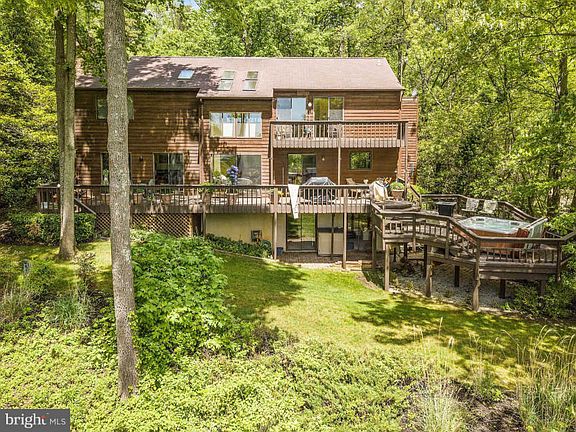 Oasis on the Magothy 331 Eagle Hill Slowly cruise the long and curved drive, shielded by the trees standing sentinel on this wooded property. As you unwind from the busyness of life the trees open up, and there standing in the clearing is your new home: a custom designed oasis that is in complete harmony with its serene surroundings. The home issues a warm welcome with a double front entry door. Open the door to the large 2 story foyer and be greeted by the Magothy River. The view of the river entices you as you step onto the back deck which extends the entire width of the home. Enjoy the beauty nature presents you. Have a seat and introduce yourself to the teeming wildlife of the shore. Step into the hot tub of a blissful summer evening and watch the sail boat races that course past. Let this moment infuse your being as you now explore the impeccable home. Designed by an architect, constructed by an esteemed local builder, and overseen by the homeowners, this home stands apart. The floor plan is a harmonious blend of open space and intimate formal rooms. The well designed kitchen, with glass sliders to the deck, lends itself to entertaining. Granite counters top the beautiful all wood cabinets. A granite Blanco sink with its touch-less faucet rests beneath a window with river views. The kitchen has sight lines to the warm and inviting family room which boasts its own glass sliders to the deck and a brick fireplace whose colors mimic those of the deck. But the feature that draws the eye is centrally placed solarium which allows sunlight to stream into the space and serves as a passive solar heating system. Ascend the custom Mission inspired wood stairs to explore the large master suite. Overlooking the river, this room is a private retreat with a balcony, master bath with updated lighting and vanity, large walk-in closet, and a bonus space currently used as a studio. Descend the stairs to the large finished basement. With its bar of handmade tiles from Mexico, gas stove, and sliders to a ground level brick patio the basement is ideal for a night of movie watching or hosting large gatherings. This home is truly an oasis on the Magothy.