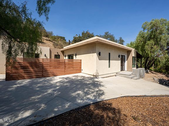 Absolutely one of a kind secluded private retreat in the heart of Westlake Village. The last house at the end of the street with very few neighbors, this private compound has open space all around, and a very unique location just a minute off the freeway but feels like a whole world away from the noise and traffic of the town. This single story modern ranch house was completely rebuilt and construction just completed for occupancy. Absolutely top of the line materials used throughout including custom tile and stone work, 9ft+ ceilings, professional appliances in the kitchen and so much more! Settle into this ultra modern home professionally designed and laid out with oversize master bedroom complete with private patio and oversize walk in closet. Massive covered patio off the living space offers just right amount of indoor/outdoor covered living. This oversize lot features a circular driveway with ample parking, wired for electric vehicle charging, and plenty of space for trailers or toys. There is not a garage on this property, however there is one storage shed that can be used to store items. This is truly a one a kind home and will rent very fast.