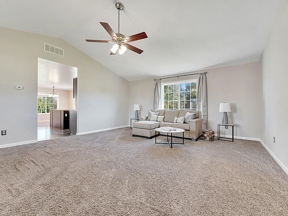 Quaint, in town living, with Country charm. This 3 bedroom, 2 bath home has been lovingly updated and is ready for new owners! Inside you will find new paint through out, a completely renovated kitchen, and a massive living room with vaulted ceilings. The updated, eat in kitchen, leads the way through French doors to a large backyard and a secluded fire pit perfect for cozy Autumn nights. Large bedrooms all outfitted with a fan & comfortably accommodate a queen size bed (as shown), master accommodates a California King comfortably (as shown) as well as featuring a substantial walk-in closet and a generously sized 4 piece master en suite bath complete with jetted soaker tub! This home qualifies for $0 money down USDA financing!! Sellers willing to offer a Home Warranty to a full price offer!! All stainless kitchen Appliances stay. 2 car Garage has 220 service & a built in work area!! Schedule your showing today, to see what your new home has to offer!