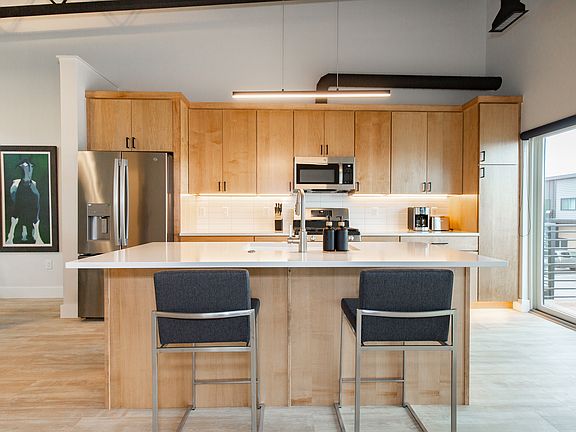 Welcome to the Flats at Gallatin Park, a unique community in northeast Bozeman that offers easy access to the wonders of Montana and the city of Bozeman, in premium furnished environments, perfect for the digital nomad. Finishes in the units are of premium quality with wood cabinets , full stainless steel appliance package including gas range, washer and dryer, large kitchen island with seating. The shower has been tiled in and there are quartz countertops throughout. Interior furnishings have been designed to be comfortable, welcoming, and uncluttered. Office areas are set up with adjustable standing/sitting desks, desk chair and business grade wifi. This unit has 1 bedroom and one dedicated office. This unit is perfect for the digital nomad with high speed internet and adjustable standing desk. It is fully outfitted with appliances, linens, cooking supplies. This unit offers a large heated garage and plentiful exterior parking . Gragae can be used as shop, storage, exercise area etc. Close to MAP brewing, Bozeman Beach and miles of walking, biking trails! Skip the crosstown traffic on powder days and zip right up to Bridger from this convenient location. We have several units in this complex with different configurations so please inquire if this does not meet your needs. 28+ day rental. Rent is seasonally adjusted. Owner pays for utilities and internet.