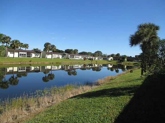 Corner 2/2 Villa with formal dining area and lg eat-in kitchen. Inside laundry and enclosed 10x12 patio with water views. Newer appliances and all tile fls. 10 miles of shore line within Golden Lakes-interior canals. Short one blk walk to Phase B Clubhouse. One pet OK 30 lb limit. Active 55+ community with courtesy Bus 2 days a wk to Grocery store, malls, shops etc. Full time social director schedules shows, trips etc. Come Discover Golden Lakes.