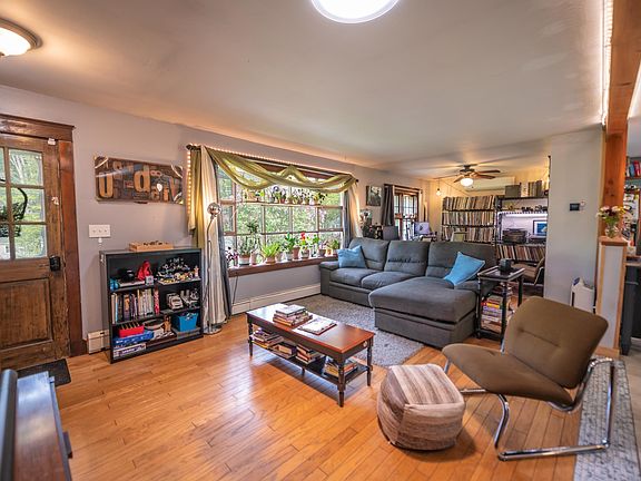 Absolutely charming updated ranch just up from Memorial Park with easy access thanks to a central location. As you come up to the home you will notice the beautiful gardens and perennials that adorn the front and rear of the property, with beautiful sunny exposure sitting well above the road, with paved driveway up to the one car garage. There is a garage entry into a rustic mudroom, or a guest front entry from the covered porch. The home was recently remodeled and many walls were extracted for a more open concept floor plan which affords eyelines from the front to rear walls. Enjoy a spacious living room, office space, large dining room with wood stove and brick hearth, and contemporary country kitchen with quartz counters and stainless appliances. A large slider to the back yard, and bay window to the front, allow for tremendous natural light. Off the kitchen is the mudroom an upscale half bath. Off the living room you will find the primary bedroom en suite with great natural wood accents and colors. There are an additional two bedrooms with another full bath as well. The rooms all have newly installed energy efficient mini splits for air conditioning and heat. There is a full basement affording great storage, a work bench, slop sink, water closet, laundry, additional living space potential, and garden area from the bulkhead access. The home also has a garden shed and private back yard space, as well as new metal roof in 2019. Showings begin May 20.