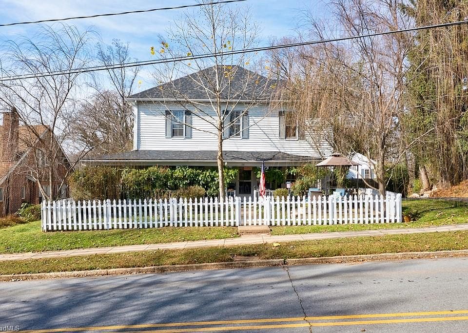 This Restored Historic 1910 Farmhouse located in heart of downtown Elkin is a steal at $104. per sq ft incl. the 700 sf apt. above the garage! Try to find another home at this price for all the charm and historic character while also having many modern conveniences. Adorned with wide moldings, shiplap walls, bead board ceiling, original hardwood throughout the home and 2 enclosed porches and 2 covered open porches will ensure plenty of room to enjoy the outdoors while sipping tea or wine in the afternoon. Front and back yard fenced. A 1-car detached garage and a cozy spacious 2/1 apartment above for extra guests or rent it out as a Air B n B, all within walking distance to restaurants, arts district, music venues, Post Office, wine bars, breweries, hundreds of miles of walking trails, kayaking on the Yadkin River, new Pickle Ball court and dog friendly town! Or better yet, invite family, friends, or clients to relax and enjoy the evenings on the large front porch.