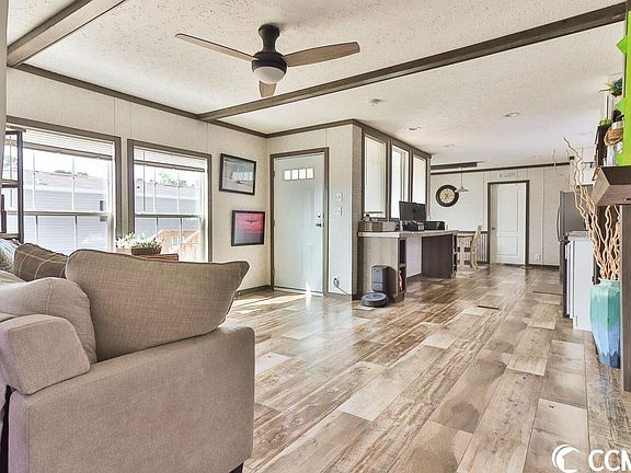 Welcome to 331 Hangar Ct – a pristine gem nestled within the vibrant Market Village community of Myrtle Beach. Boasting contemporary allure and modern comfort, this splendid residence presents an exquisite 2-bedroom, 2-bathroom home that is merely a year old. Upon entry, the open-concept design seamlessly blends elegance with functionality, creating a space that feels both inviting and sophisticated. The living room stands as a testament to this harmonious balance, basking in the warm embrace of abundant natural light. Stylish wood beams grace the ceiling, imparting a touch of rustic charm, while a cozy fireplace beckons relaxation on tranquil evenings. The kitchen emerges as a culinary haven, equipped with stainless steel appliances and fixtures that harmonize effortlessly with the sleek design. A breakfast bar invites casual conversations, while the well-appointed pantry and wood cabinets offer ample storage solutions. The modern countertops serve as both a functional workspace and a contemporary design statement, marrying practicality with aesthetic finesse. Retreating to the master suite becomes a daily indulgence, as the spacious walk-in closet provides a sense of opulence and organization. A farm-style door adds character to the master bedroom, while the dual-sink vanity and expansive walk-in shower elevate the en-suite bathroom to a realm of luxury. The second bedroom also offers a walk-in closet, ensuring that comfort and convenience are never compromised. The laundry area presents its own entrance, perfectly aligning with the thoughtful layout of the home. Step outside onto the partially covered deck, where you can immerse yourself in the sights and sounds of the enchanting neighborhood. Positioned just off 17 By-pass, this residence opens the door to a world of possibilities. Myrtle Beach State Park, The Market Commons, Coastal Grand Mall, and Broadway at the Beach are mere minutes away, promising a wealth of recreational and entertainment options. Don't miss your chance to embrace the essence of Myrtle Beach living in this exceptional Market Village abode. Book your showing today!