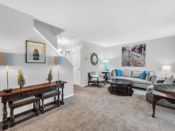Beautiful townhouse in Winghaven on tree lined street! Backs to wooded common ground for privacy. Main level living room greets you as you walk in the property. Lovely eat in kitchen and 1/2 bath also on main level. Primary bedroom suite and 2nd bedroom and full bath on upper level. Upper level has a spacious bonus area too! Washer/Dryer and fridge stays!! Full basement and large one car garage attached.Walking distance to Winghaven Boardwalk Shops. Easy access to 40/64,70, 94 and 364. Near Winghaven Country Club! HOA is $180 monthly(includes some insurance,landscaping and snow removal) with an additional fee of $300 in February yearly.