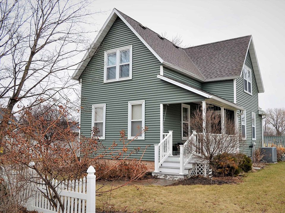 Beautifully updated turn of the century 2 story located within walking distance of restaurants, Fox River walkway, grocery store and schools. Home has newer updated windows, roof, siding & soffits, furnace & central air. Includes all kitchen appliances and washer & dryer. Relaxing backyard deck. Newer 2.5 stall insulated finished & heated garage with 11x20 upper loft.