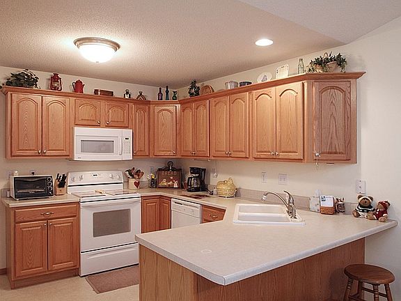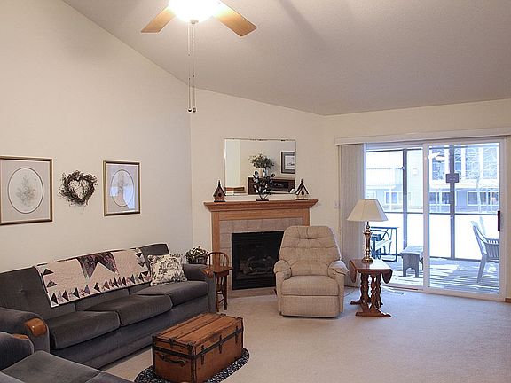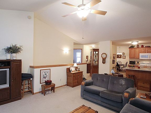 Bright and sunny end unit condo with over 1270 finished square feet is ready to move into with 2 bedrooms, 2 baths, main floor laundry, open floor plan & vaulted ceilings. The large vaulted great room features a gas fireplace with sliding door to the fantastic vaulted screen porch with door to common area. The great room flows into the dining area & delightful kitchen with quartz counter tops, tiled backsplash, breakfast bar, cabinets with crown molding, wonderful walk-in pantry, appliances & a formal dining room for ease in entertaining. King size master suite features his and her closets, private bath with linen storage cabinet and separate shower. The second bedroom features a built-in desk. The main floor laundry features a closet, cabinets & the washer/dryer remain. LARGE lower level with three daylight windows & stubbed-in bath for feature expansion. Two car attached garage, ideally located in a quiet neighborhood & close to shopping. Pets allowed under 60 pounds.