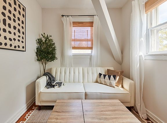 AVAILABLE FURNISHED OR UNFURNISHED. Nestled in the heart of the premiere neighborhood of Highland Park, you will encounter this charming and newly renovated one bedroom apartment. This immaculately decorated suite can be found on the top floor of a mini-mansion on Highland Boulevard, one of the highest points in Brooklyn. Walk in and become immediately impressed by the beautiful open kitchen adorned with unique brushed gold shelves, stainless steel appliances, and every amenity imaginable including dishwasher, and an under-counter washer and dryer. Imagine hosting in the kitchen while entertaining friends seated at the peninsula, or in the large living space complete with dining area and comfy seating for lounging, or watching television. Enter the bedroom and marvel at the meticulous aesthetic, abundance of space, and efficiency provided by the thoughtful layout and open concept wardrobe. Not to be overlooked is the light and airy home office adjacent to the bedroom which is perfect for those days when you are working from home or just in need of a cozy, quiet, and comfortable space to read and relax. Don't forget to glimpse out of the windows to enjoy the sweeping views of the New York City skyline. Before leaving, also take a peek into the spa-like bathroom drenched in sunlight from the in-shower skylight. This apartment is truly a gem...tastefully decorated with many high-end accessories provided. Step outside and take advantage of the lively and diverse neighborhood of Highland Park known for its majestic views and outdoor recreational spaces including the park it is named after which boasts over 500 acres of land, a baseball diamond, tennis courts and hiking trails. There are also countless stores, restaurants and amenities within walking distance. Public transportation (C, J and Z trains), and major highways are just minutes from your doorstep. Showings and open houses are by appointment only booked in advance. Call today to schedule your viewing. HIDE FULL DESCRIPTION