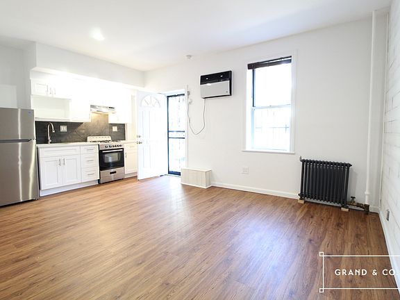Gut renovated Alcove studio with private entrance, fabulous natural light soaks the open floor plan all day. - Bedroom alcove can accommodate a queen bed, dresser, and has a double closet with additional storage space. - Brand new stainless steel appliances, including gas range stove/oven and full size refrigerator. - Freshly tiled bathroom with tub and vanity. - AC unit installed in the wall, nothing clunky hanging out of a window. - White washed shiplap walls giving the space a gallery feel. - 2 large windows allowing natural light. - Polished hardware floors. Live in the heart of Williamsburg, just tucked away on a quiet tree lined street. Access to all that the neighborhood has to offer, bars and restaurants (the food scene on Graham is amazing), nightlife, concerts, and McCarren & Cooper Park.