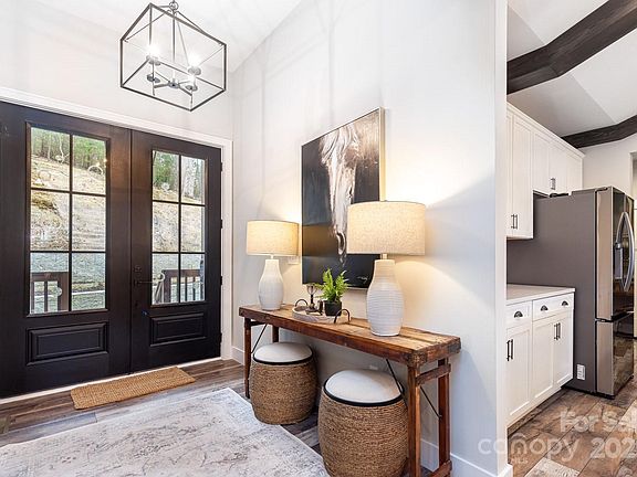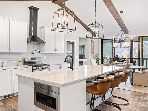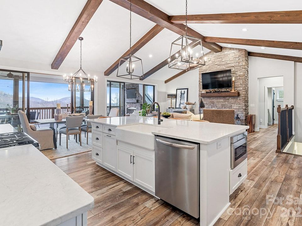 Perched in the heart of the Blue Ridge Mountains, this stunning modern farmhouse is a sanctuary of luxury, comfort and nature. Thoughtfully designed and impeccably curated, it offers breathtaking long-range views and direct access to the Pisgah National Forest. Step inside to soaring ceilings, sun-drenched spaces and an open-concept design that invites the outdoors in. The gourmet kitchen boasts custom cabinetry and a spacious island with farmhouse sink—perfect for gathering. A screened-in porch with a stone wood-burning fireplace creates an idyllic space for year-round relaxation. The lower level features a private living area, bedroom, gym, plumbed for a full kitchen, a hot tub and separate entrance—ideal for guests. For golf lovers, High Vista Golf Course & Clubhouse are just a golf cart ride away. Outdoor enthusiasts will revel in 500+ acres of Pisgah National Forest just steps from the door. Inquire about the turn-key purchase option which includes home furnishings.