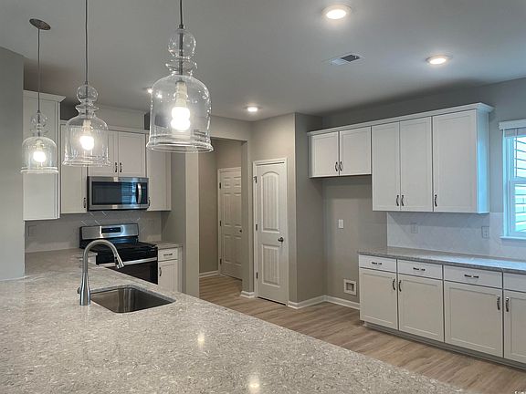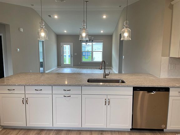 This home is under construction with an estimated completion date of June 2024. The Camden plan boasts single-story living, offering 3 bedrooms, 2 bathrooms, and a spacious 2-car garage. As you step into the expansive foyer, the inviting atmosphere of your future home becomes palpable. Your state-of-the-art kitchen seamlessly connects to the main living space, providing a perfect setting to prepare meals while staying connected with the family's daily happenings. This upscale kitchen includes granite countertops, a stainless steel gas range, a dishwasher, and a vented microwave—all standard features in the Sunset Landing community. Fashioned for extraordinary moments, the great room awaits, ideal for game nights, movie nights, and entertaining. The package also encompasses Mohawk ReVWood plank flooring in the kitchen, carpet in bedrooms, and stylish vinyl flooring in all bathrooms. Every home in Sunset Landing comes equipped with a tankless water heater. The community, surrounded by a natural treeline, is a haven of natural gas living, showcasing a brand-new collection of single-family homes. With only 193 homes in this cozy neighborhood, residents enjoy access to an on-site clubhouse, pool, sidewalks, and regular trash and recycling services. Sunset Landing, located less than a mile from Highway 31, provides swift access to explore the entire coastline. Nestled in the charming fishing and boating town of Little River, South Carolina, this area offers a serene escape from the hustle and bustle of Myrtle Beach. Enjoy a laid-back atmosphere with waterfront dining, boutique-style shopping, marinas, and championship golf courses—all just minutes away from Sunset Landing. Embark on your exploration today! Please note that all images are from a previous Spec Home. Please note: Photos may be of an artist's rendering, previously built home, and/or the furnished model home which has upgrades not included in price.