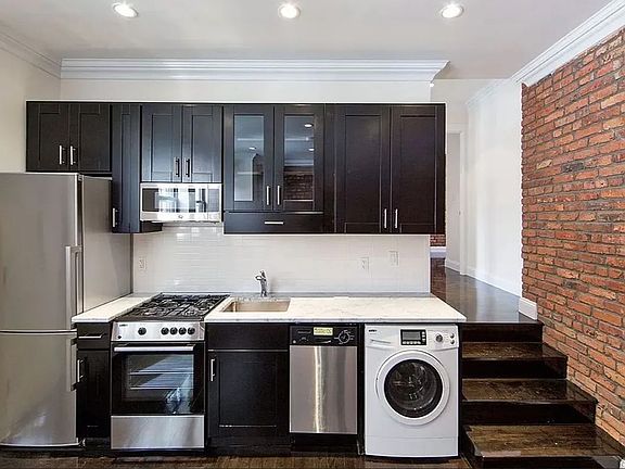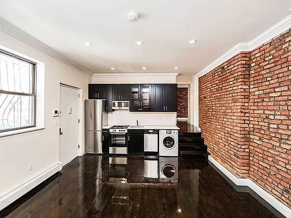 THE FIRST SHOWING SATURDAY, FEBRUARY 1. EMAIL PREFERRED. This is a gut-renovated two-bedroom apartment with a washer and dryer in the unit and a huge private patio. It features Brand-New Renovations, Ebony Hardwood Floors, an Open Gourmet Kitchen, Stainless Steel Appliances, Carrara Marble Countertops, Recessed Lighting, Crown Molding, Exposed Brick, Oversized Windows, and a Luxurious Bath featuring intricate mosaic tile work.