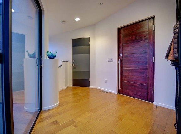 Custom designed, open area home with inverted floor plan.Livable areas maintain views while the sleeping areas are more private. The design assumes there is nothingin space that is a straight line and all is bent by mass.Therefore the house does not have any straight lines or 90-degree angles on external walls.Every wallis curved including the stairs. The foundation has permanent shoring with 10 feet pillars embedded in the hill. Pre-wired for solar panels. 180-Degree Lagoon view.