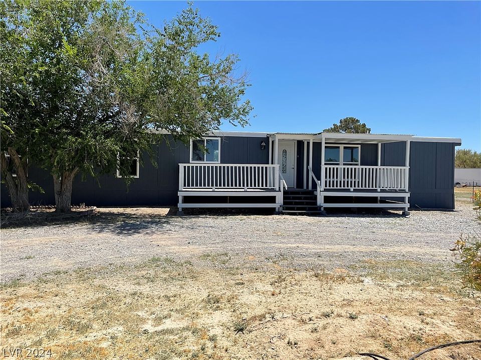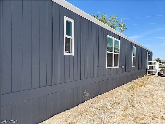 Totally renovated property from top to bottom. New kitchen and appliances. Brand new AC/Heating unit installed. Interior is all drywall, no paneling. Ceiling fans in every room. Has well water with water rights. Outdoor patio has been extended. Oversized RV storage and workbench approximately 900 sq ft. Sitting on approximately 1.06 Acres. Also includes fire pit in the backyard. Close to all shopping, school, fast foods restaurants and casinos. Easy access to highway 160 to Las Vegas. Converted to real property so FHA , VA and conventional financing are available.