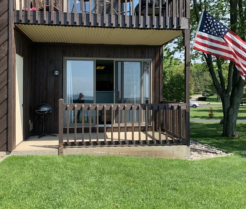 Picture yourself relaxing in your quiet home nestled on the lower level corner of Harbor Pines. Views of the beautiful Lake Huron await you all four seasons. Enjoy many gorgeous sunsets from your first floor covered patio. You will be just a short walk or bike ride to downtown Port Austin and all the activities that await you. This open concept 1 bedroom 1 bath has been newly remodeled and updated with a Trane XR 80 furnace, new water heater, garbage disposal, vinyl plank floor, tiled shower, updated kitchen and appliances that are less than 2 years old. Enjoy the custom gas fireplace on the chilly evenings. This condo comes mostly furnished and is move in ready! Call to book your showing today! Be sure to check out the descriptions on the photo tour.