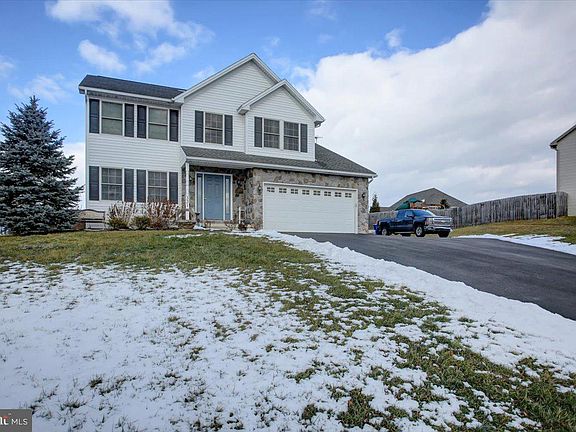 Welcome to this stunning colonial-style home! Built in 2007, this 4-bedroom, 2 full bath, 2 half bath home offers 2,220 sq. ft. of comfortable living space. The main floor boasts hardwood flooring, a spacious kitchen with stainless steel appliances, a separate dining room, a convenient laundry room, and a flexible space perfect for a home office or sitting room. The primary bedroom features beautiful bamboo flooring, a jetted tub, and a separate walk-in shower. The finished basement provides additional living space, including a media room ideal for movie nights, a half bath, and plenty of storage. Enjoy outdoor living on the beautiful paver patio with a cozy fire pit, picket-fenced area, and privacy-enhancing Green Giant trees. Additional highlights include a widened driveway for extra parking, a 2-car attached garage, a 12x20 Esh's shed, a swingset, a radon evacuation system, and an ATA security system (currently not in use but available). This well-maintained home is move-in ready—schedule your tour today!