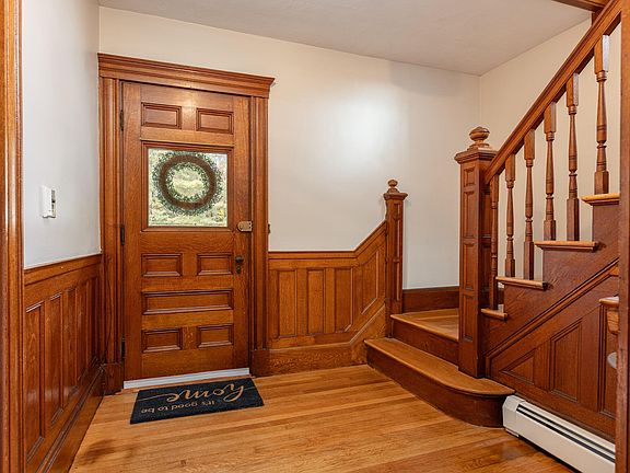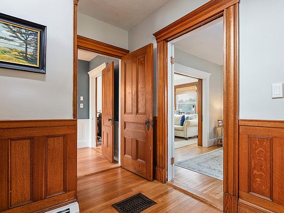 Prime location in Cumberland,Beautiful Historic Home! This tastefully and meticulously remodeled classic New Englander has all of the craft, depth and beauty of the past with the comfort and ease of modern efficiency and amenities. 4 bedroom 1.5 bath antique home beautifully updated inside and out 2020-2023. Quintessential Maine curb appeal, the home sits tall and proud on a clear and level lot adding to the charming nostalgia of Main Street. Bright, warm and so inviting, the interior has been thoroughly renewed and redone with respect for the elegant historic elements. Brand new, Natural Gas, HW on-demand baseboard heating system installed September 2023. Fully renovated kitchen with all new appliances with a lovely and convenient pantry with laundry, and half bath adjacent. Hardwood floors have been refinished throughout, interior freshly painted, all lighting fixtures, cabinets, countertops and hardware updated. Stunning formal dining room with original built-ins and inlaid wainscotting, two elegant living and entertaining spaces separated by pocket doors, and the sweet wood stove adds ambiance and warmth. Gorgeous grand staircase, 4 sizable and sunny bedrooms and newly remodeled bath on the second floor. Walk-up access to the large, dry attic for even more storage. Exterior siding painted 2023. Open lot with mature trees, great space for expansion and entertaining, new firepit and surprisingly tranquil for an in-town lot. The circular, recently regraded drive offers plenty of parking. Tons of storage in the back breezeway and barn portion of the property. Seller had plans to remove breezeway and barn to replace it with a new, attached, 2 bay garage. Quote and contractors are available to complete. One of the few walkable locations in Cumberland. Steps to Greeley High and Middle. Minutes to all amenities, groceries, restaurants, the golf course, less than 20 minutes to Portland. A truly special piece of our past lovingly brought up to our modern standards.