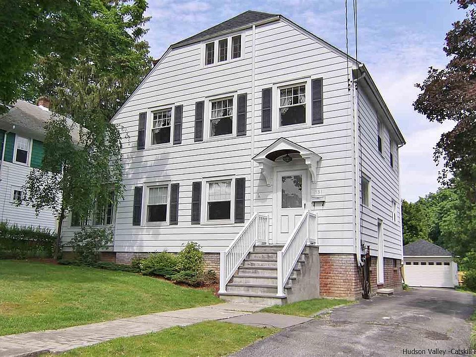 Classic two story home is located close Uptown Kingston's historic district. Walk to Uptown shops, eateries, bus and farmers market. The wonderfully preserved home offers all hard wood floors up and down. A two sided fireplace in the grand living room flows into the den, one side is wood burning and the other is natural gas offering both charm and convenience. There is a first floor bedroom with a full bath in the hall, this could make a great first floor suite or guest quarters. The kitchen has been updated in recent years offering cherry wood cabinets and access to the back deck great for afternoon dinners and BBQ's'. Three nice sized bedrooms are on the second floor sharing another full bath. Walk-up attic is off one of the bedrooms, offers a soaring high ceiling perfect for storage or possible finishing options. The basement is full and dry, there is a washer and dryer along with a half bath on this level. Plenty of off street parking, long driveway leads to the detached garage and the level backyard. There are also many wonderful updates, brand new architectural shingle roof and rubber roof was just installed this year. Most windows in the home have also been replaced in recent year. Taxes are estimated will update the actual figures soon, seller had major tax exemptions.