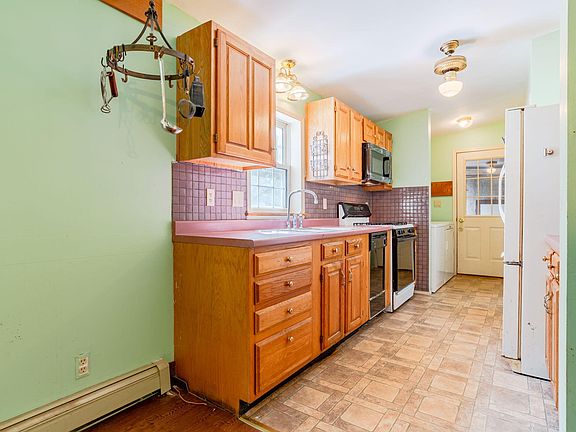 Step inside to find a warm and welcoming interior with an open layout. The galley kitchen is perfect for home cooking and features ample counter space and storage. Adjacent to the kitchen, the sunroom provides a lovely space to enjoy your morning coffee or relax with a good book, overlooking the picturesque front yard.