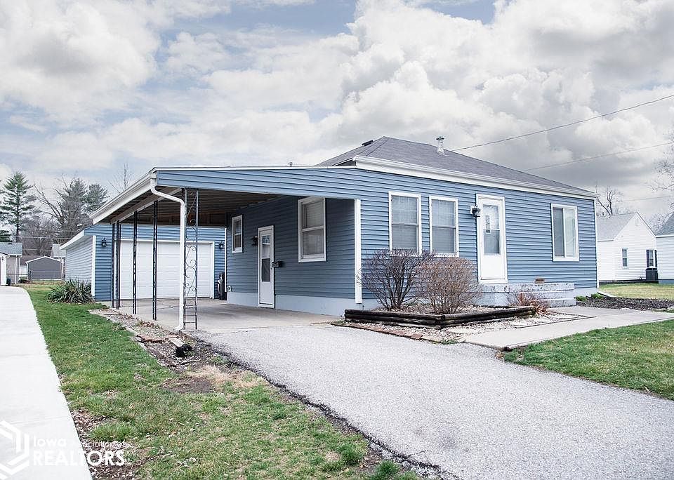 Video walkthrough tour available online. Nestled in a great Ottumwa neighborhood, 331 McKinley exudes modern elegance and timeless charm. This meticulously maintained single-family home offers 2 bedrooms, 1 bathroom, and a spacious, inviting living space. Upon arrival, the beautifully landscaped front yard and charming front porch welcomes you home. Convenient parking options include a carport and a detached garage. Recent upgrades include windows and siding, ensuring both durability and curb appeal. The oversized garage mirrors the property's spaciousness, a rare find on a quarter-acre lot within city limits. Enjoy proximity to Wildwood Park's natural beauty, as well as easy access to retail shopping and grocery stores. Don't miss the opportunity to make this exceptional property your own!