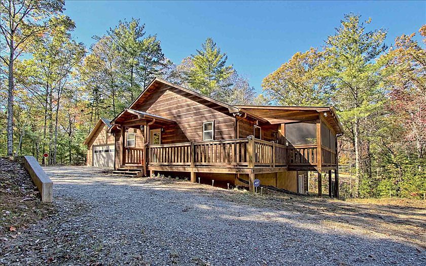 Perfect for year round living or a great escape, spacious one level rustic home with 3+ bedrooms 3 full baths, full finished basement could easily accommodate more bedrooms, open floor plan, stone fireplace with gas logs, screened porch, oversized 2 car detached garage with work room. Most furnishings are negotiable. Conveniently located between Blairsville and Murphy N.C. and very close to Lake Nottely.