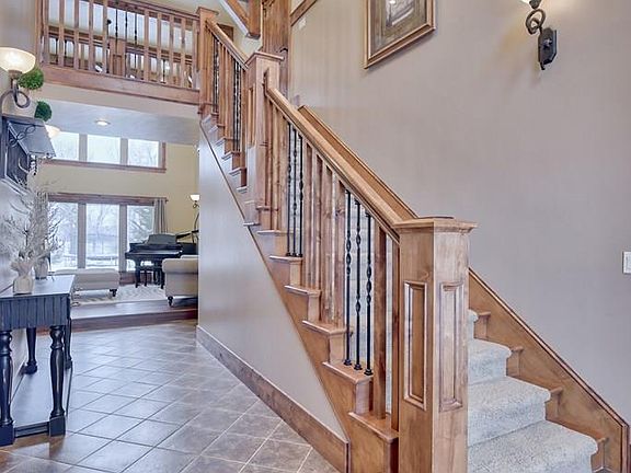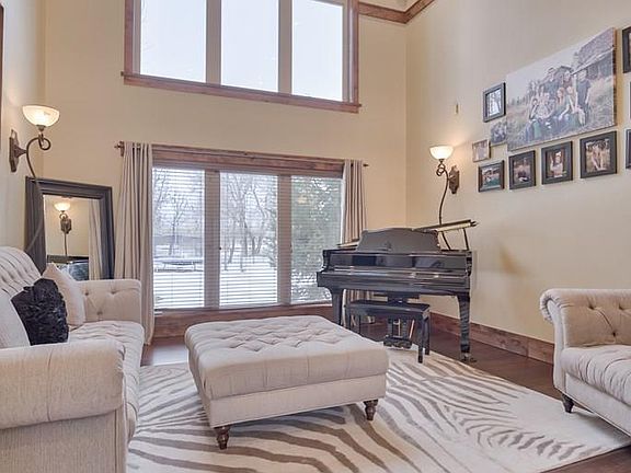 This beautiful home is now available in the Riverbend neighborhood just east of Rigby. A circular driveway and stamped concrete walkway guide you to the covered front entrance of the home. The grand entry features tile flooring, a beautiful chandelier, and soaring ceilings. Off the entryway is an office space with a bay window overlooking the yard. The formal sitting room has 2 story high ceilings, large windows, and exposed beam accents. The kitchen is immaculate with tile flooring, granite countertops, custom cabinetry, & high-end stainless steel appliances. You'll love the large walk-in pantry and the conveniently located 1/2 bathroom just off the kitchen. With the great room just off the dining room & kitchen, you'll have the perfect space for entertaining. The custom cabinetry in the laundry room offers a variety of storage options including a clothing rack. The main floor master suite has an adjacent sitting room with fireplace, 2 large closets, and a dream bathroom, you'll love the trim work and flooring! Upstairs are 3 more bedrooms, 2 full bathrooms, & a theater room with wet bar. There is a large 2 bay shop with 720 SqFt of living space above. The yard is mature and fully landscaped with large trees, a fire pit, and plenty of privacy.
