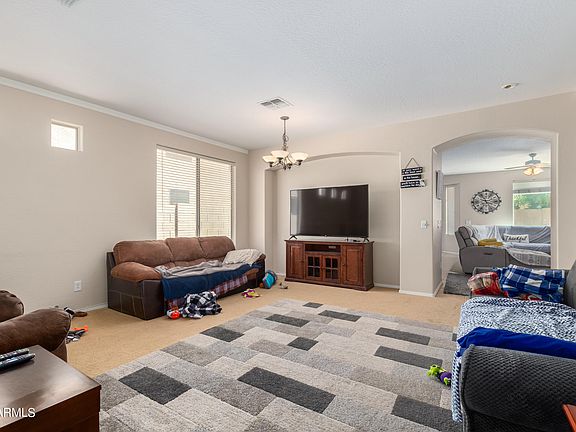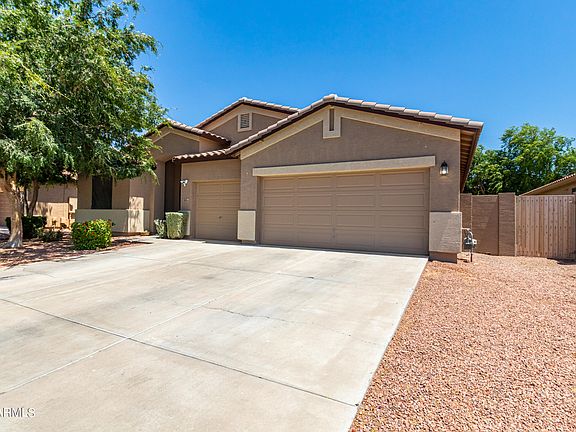 Beautiful single level 4 bed 3 bath home with a 3 car garage. Prime location with a park across the street that includes playground, basketball courts and volleyball court. Open floor plan, with ceramic tile in all the traffic areas. Eat-in kitchen features an island and a walk-in pantry. Kitchen opens to an over-sized great room. Primary suite has a private exit to the backyard, walk-in closet, and Primary bath that has a garden tub, separate shower and dual sinks. All secondary bedrooms are huge and have ceiling fans. Low maintenance desert front yard. Large back yard has a grassy area and a covered patio. Walking distance to shops, A+ schools & easy access to freeways.