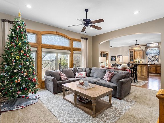 Welcome home to 331 N. Fiddlers Creek Street, situated on a 2/3-acre lot, overlooking a peaceful Kansas prairie. This 5 bedroom, 3 bathroom home is a former Steve Lee model, built with many architectural advancements. From the moment you enter the front door, your eyes will be drawn through the open living space to the expansive wall of windows encased in solid Knotty Alder overlooking the covered deck and backyard. The living room and formal dining room have an open concept feel that flows directly into the kitchen. A Chef’s dream, this stately kitchen features rich Knotty Alder cabinetry, granite countertops, large island with eating bar, new GE dishwasher with a convenient 3rd washing rack, new GE convection oven with an air fryer setting, new GE microwave, a Whirlpool Gold stainless refrigerator, under and over cabinet lighting, a walk-in Butler’s pantry, and is open to the hearth room. Natural light casts a warm glow on the oak hardwood floors that span this area. Off the kitchen is the separate laundry room with wash sink, folding table, hanging rod, and plentiful storage cabinets. Spend peaceful nights in the main floor master suite with a jacuzzi tub, double vanities, tile shower, and walk in closet. The basement will be another favorite gathering space with a family room with second fireplace, gaming area, and wet bar. Three additional bedrooms, a full bathroom, and a storage/mechanical room finish off this walk out basement. A few of the other features and upgrades that this home has to offer include a high efficiency (large capacity) furnace and air conditioner installed in 2015 with GeneralAire filtration and humidifier, plantation shutters in the dining room, new exterior paint in 2017, sprinkler system, fully finished and insulated 3 car garage, full approach driveway, and mature landscaping and trees. The neighborhood has a community pool, playground, walking paths, and pond. The location here is ideal with easy access to the highway but tucked away from all the hustle and bustle. Become part of the USD 262, the highly acclaimed Valley Center school district, a full Kansas Education Systems Accreditation, 2021 Commissioners Award for Post-Secondary Success, ranked #5 Best School District in the Wichita area. You will be sick at heart if you miss out on this one!