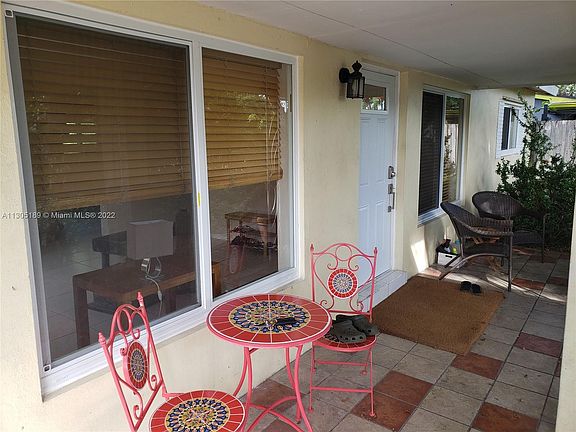 Popular Lloyd Estates Two bed plus den or Third Bedroom 1 bath home. Only a few minutes to all of the activity on Wilton Drive or the beach. Close to public transportation, restaurants and shopping. Perfect for the first time buyer. The eat in kitchen features wood cabinets and granite counters with newer appliances. The large utility room has stacked washer and dryer and is large enough to add a bathroom. The home has all tile floors, newer impact glass windows and impact doors. Roof is apox 2 years old. Several varieties of mature fruit trees on the property including mango, Starfruit, coconut, and loquat. The yard is large enough for a pool. Additional shed for storage