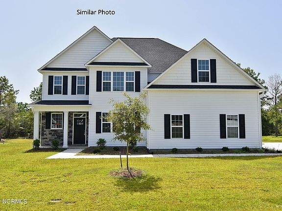 Welcome to the highly desired & popular community of Onslow Bay. Brand new construction built by Onslow County's most trusted & preferred builder, featured in Builder 100/ Top 200 Builders in the country. Onslow Bay is a hot spot, 3 miles to MCB Camp Lejeune's Piney Green gate, 14 miles to New River Air Station & minutes to area schools, shopping & dining. This beautiful neighborhood is sure to impress, complete with a clubhouse area & community pool. Welcome to the Laura E 3317. Total 5 bedrooms, 4.5 bathrooms. Approx. 3317 heated square feet. The charming front porch awaits your hanging baskets and a welcome mat. Enter through the impressive 2-story foyer. 13x14 formal dining room. Very open main level with 15x22 family room accented by a ceiling fan & a fireplace with custom mantel. Beautiful kitchen features flat panel, staggered cabinets, an island and stainless-steel appliances to include smooth top range, dishwasher and built-in microwave. 10x11 breakfast room. Main level master with a walk-in closet and elegant master bath makes for a great guest room. Second floor also features a true 15x19 master bedroom with a sitting area, walk-in closet and a grand master bath. Master bath has separate vanities, separate shower and soaking tub. Bedroom 2 is a big 13x14 with a walk-in closet. Bedrooms 3 & 4 share an attached bathroom. Upstairs laundry room. This popular plan should accommodate everyone. 2 car garage and a cozy covered back porch. Call Today. NOTE: Floor plan renderings are similar & solely representational. Measurements, elevations & specs may vary in final construction. All selections have been ordered, limited selections for buyer to choose. Call L/A to verify.