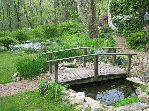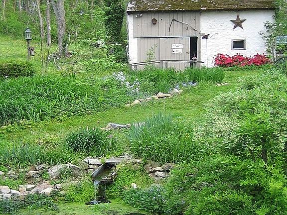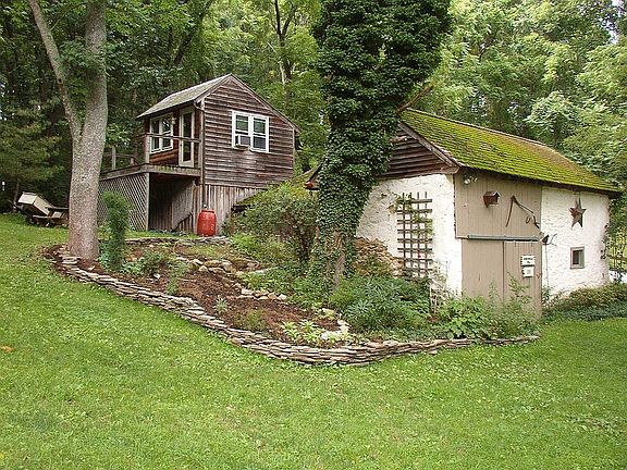 Circa 1700 stone farm house with 3 detached buildings: functioning springhouse, garage, tool/work shed with fully wired 2nd floor office with porch overlooking woods. Large deck outside kitchen, screened porch and grotto. Indiginous plantings throughout the year