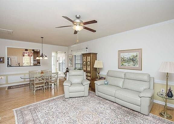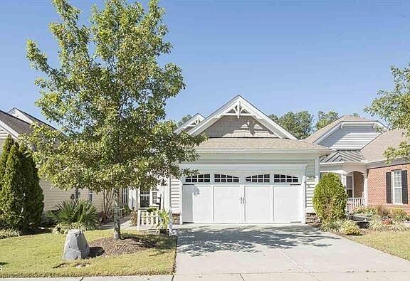 Lovely Gray Myst floor plan offers easy single level living. Located in one of the best 55+ active adult communities in the Triangle. Open living spaces and a large kitchen welcome you as you enter this sunny home. Extra cabinets and tons of counter space will have you cooking in no time in this beautiful eat in kitchen. Extensive moldings throughout the home add a touch of elegance, and the surround sound pre-wiring make for easy installation of your favorite gadgets. Includes unmonitored wired security cameras and alarm system. This home is also loaded with storage including a Double garage with epoxy floor! Private lot!